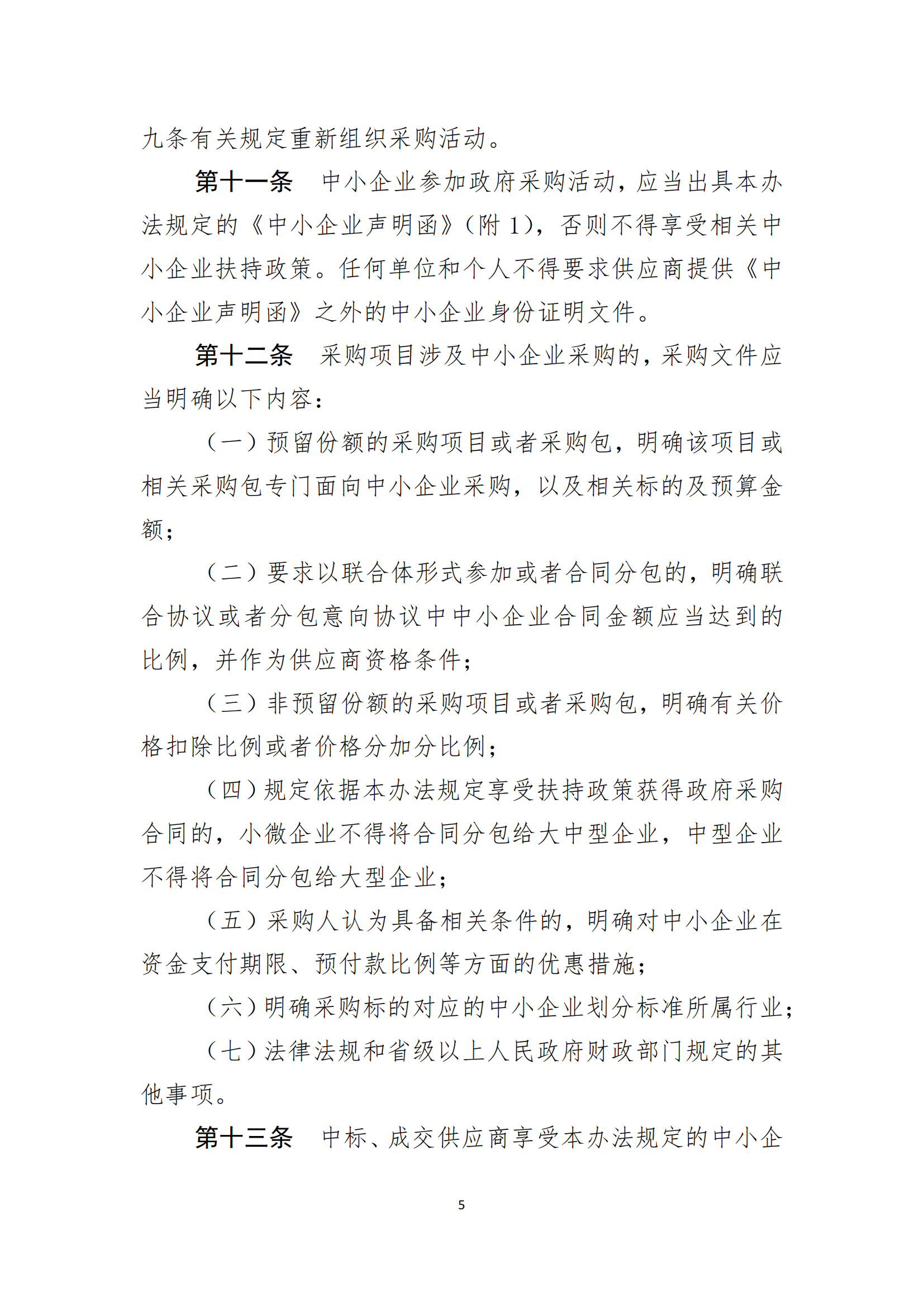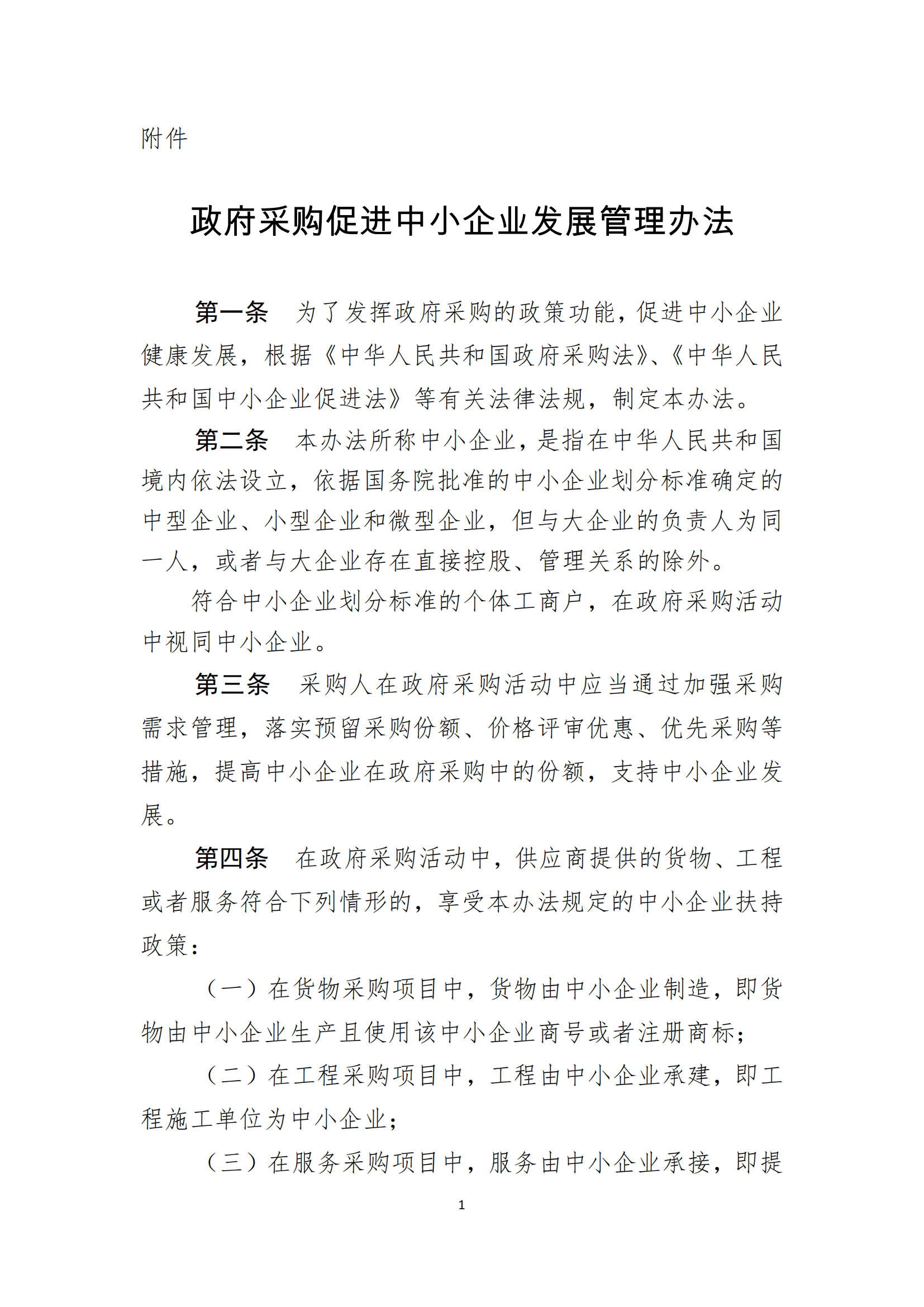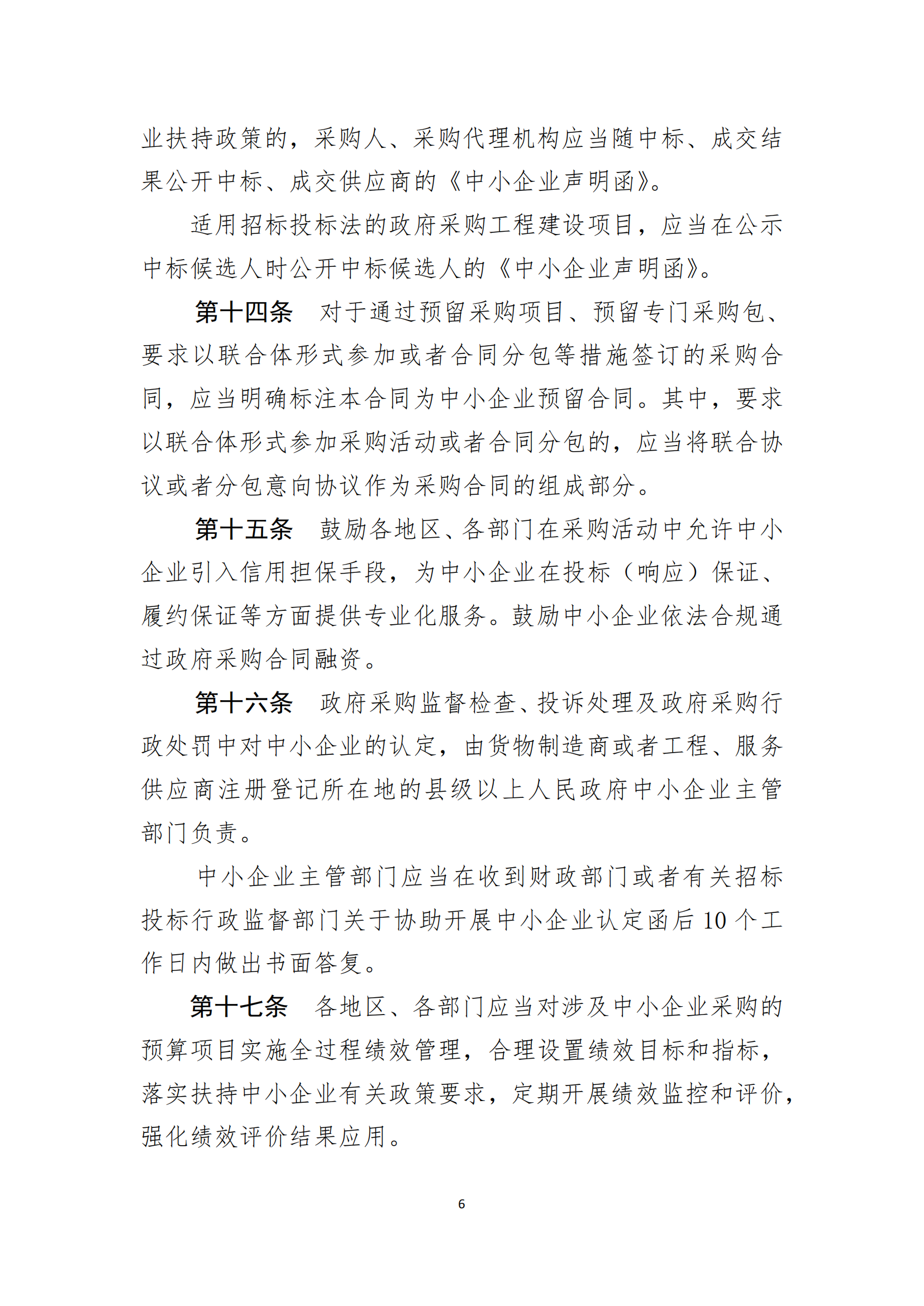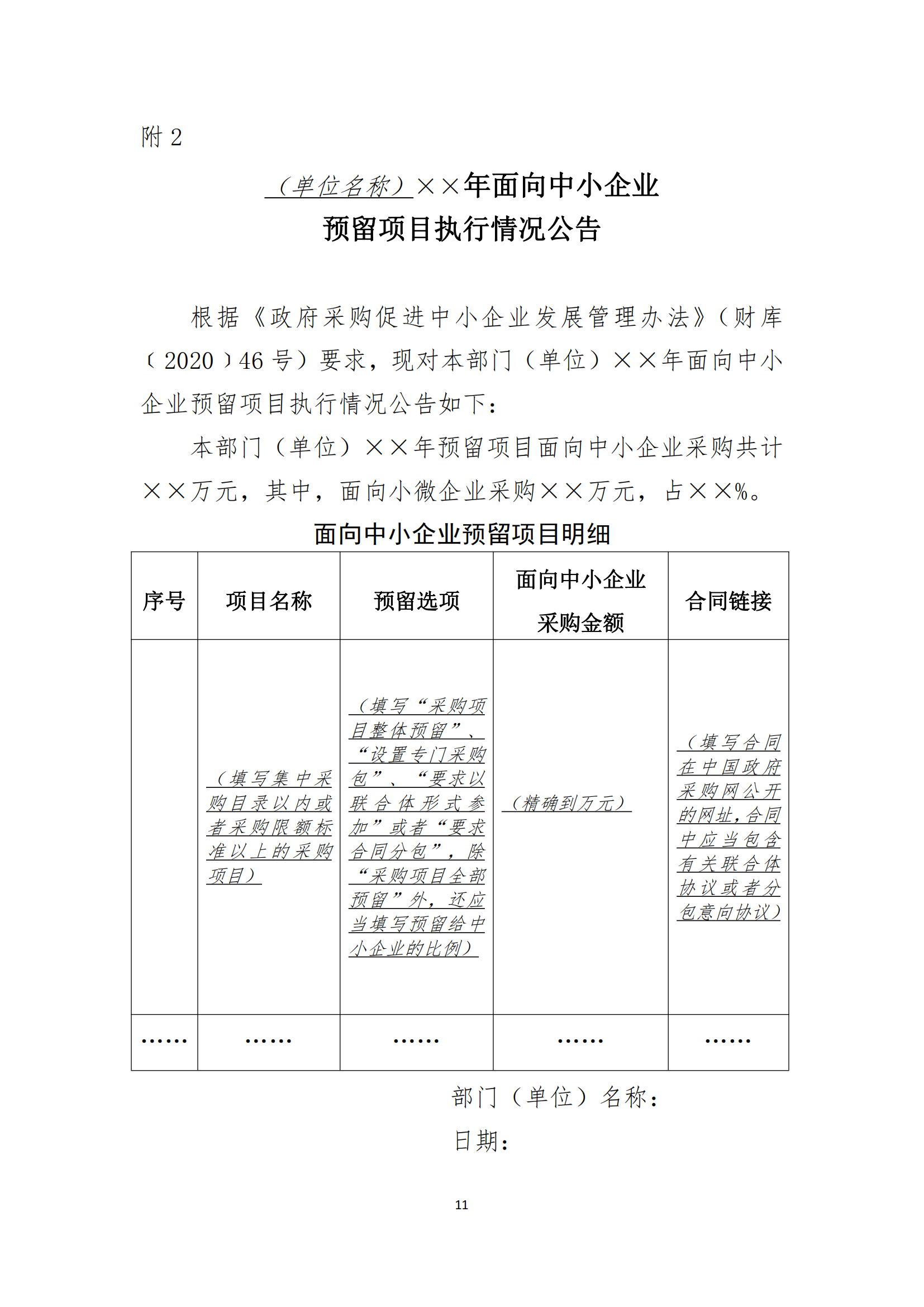 政府采购促进中小企业发展管理办法 财库[2020]46
